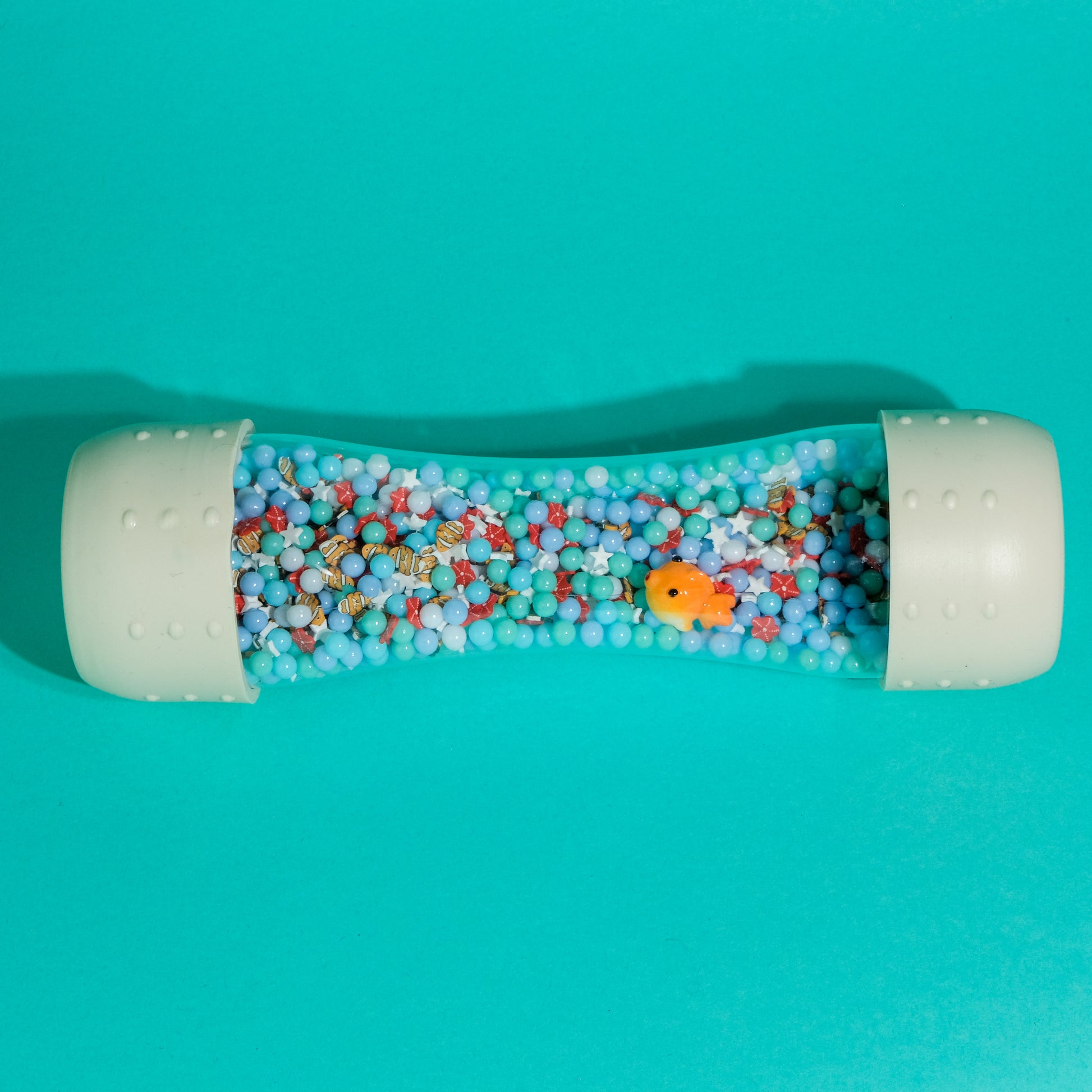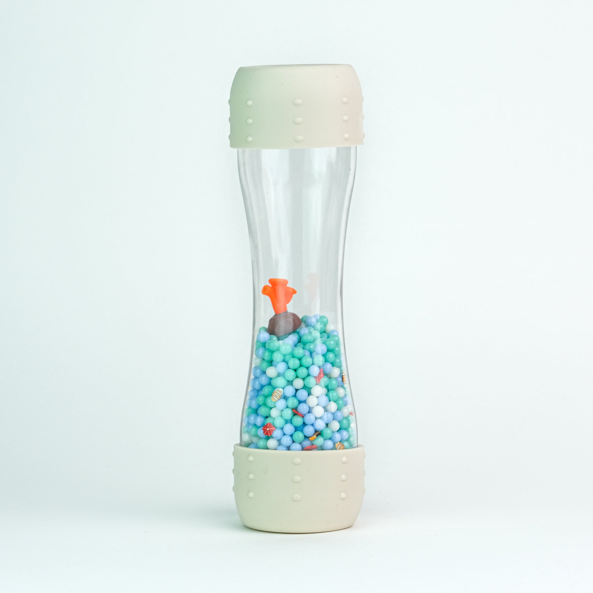 Diseñada para cautivar y estimular, esta botella presenta una vibrante mezcla de cuentas azules, junto a pececitos naranjas y estrellas rojas que flotan en un mar de serenidad. No es solo un placer visual: es una experiencia auditiva suave que transporta a lo más profundo del océano, ideal para el juego tranquilo y momentos de pausa. 🐟🌟