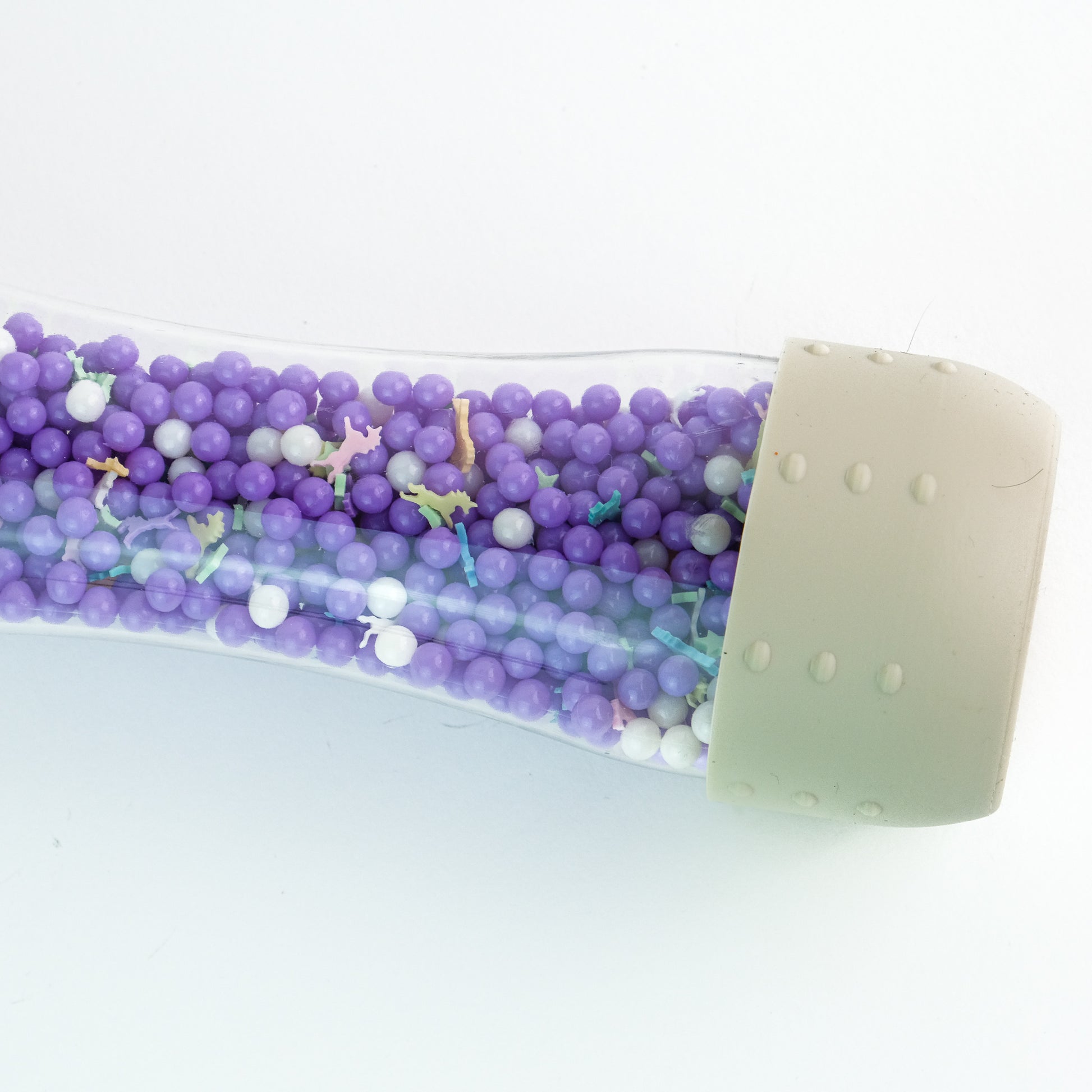 Diseñada especialmente para las manos más pequeñas, Unicornio transporta a tu peque a un mundo lleno de fantasÃa, estrellitas y unicornios encantados. Al agitarla, las cuentas en tonos violeta y blanco generan un sonido suave y relajante, mientras en su interior se asoman pequeñas figuras de unicornios y estrellas brillantes, rodeando a un majestuoso unicornio central.